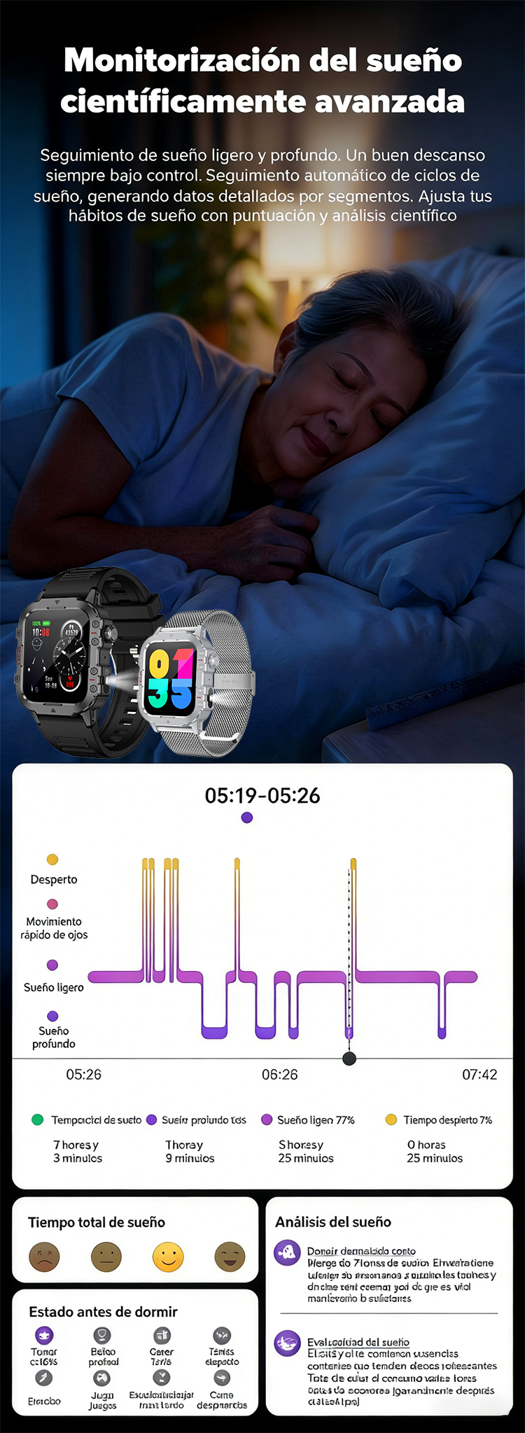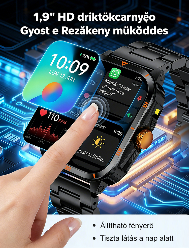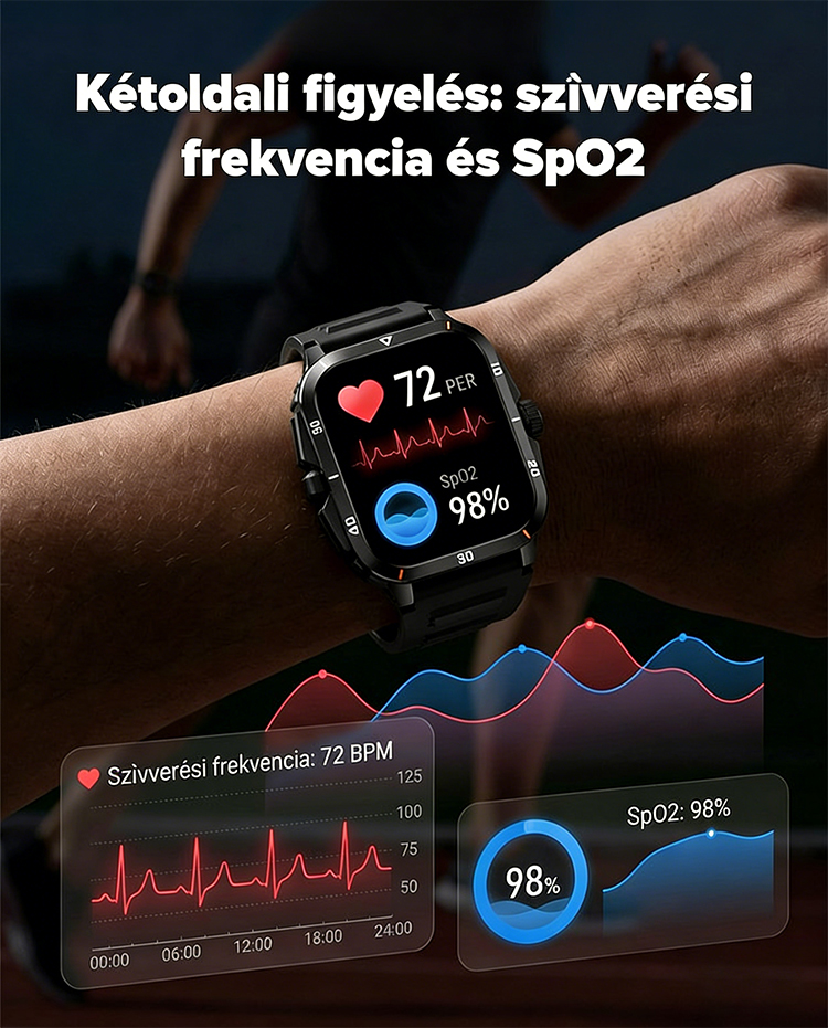 ✅ 99,9%-os pontosságú monitorozás: Folyamatosan nyomon követi a vércukorszintedet, vérnyomásodat, pulzusodat, testhőmérsékletedet, oxigénszaturációdat, pulzusodat és alvásodat – mindezt egyetlen eszközben.